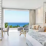 Situat la mai puțin 10 minute de mers pe jos de Caramela, Ikos Aria Hotel de 5 stele are o sală de tratament, o saună și facilități de saună. Acest hotel de lux are o grădină privată și oferă vedere la Marea Egee și se află la câțiva metri de Agios Stefanos Beach.